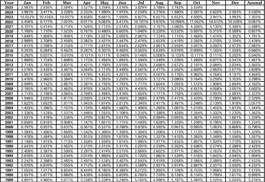 U.K. Inflation rates chart.